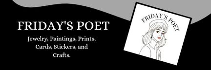 Fridays Poet is dedicated to fostering artistic expression through painting, jewlery, greeting cards, photography prints, stickers, and sewing products. My hope is to eventually create a space for other artists to display their work. I also want to create a space for artistic collaboration.